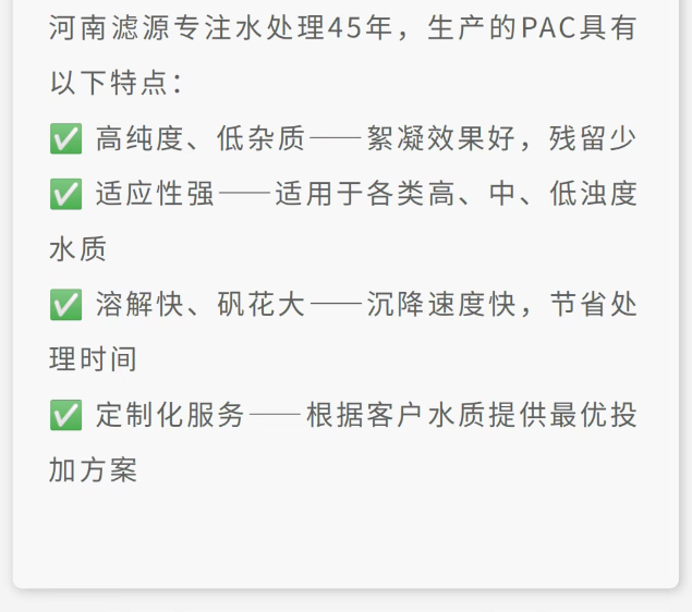 《從渾濁到清澈:PAC過量投加的反效果與精確控制方法》 咨詢熱線:15638187355 在線咨詢 產品詳細 上一篇:PAC如何“抓”住污水中的雜質?揭秘污水處理的高效凈水劑! 下一篇:2025年河南濾源第三季度啟動大會圓滿成功! 用手機看 拍下二維碼,信息隨身看 試試用手機掃一掃,在你手機上繼續觀看此頁面。